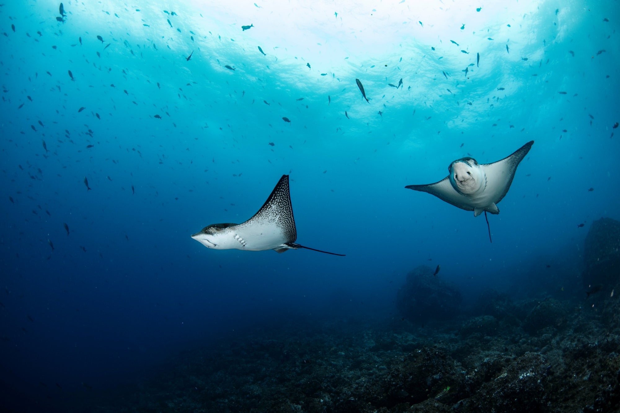 We continue exploring the vivid and colorful world of tropical fish, spotting groups of surgeonfish, angelfish, and parrotfish. If we are lucky, we may even find a few secretive seahorses hiding among the reef’s crevices. Later, we gather to share stories of our underwater adventures while the onboard cook prepares a delicious lunch on the Galaxy Diver. In the late afternoon, we set off on a 14 hour journey across the Galapagos Sea toward Wolf Island.